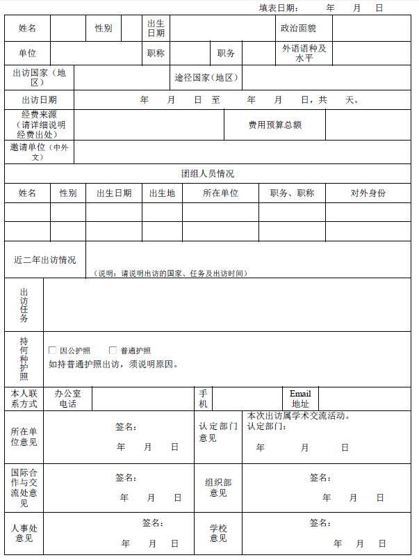 附:教学科研人员因公临时出国申报表