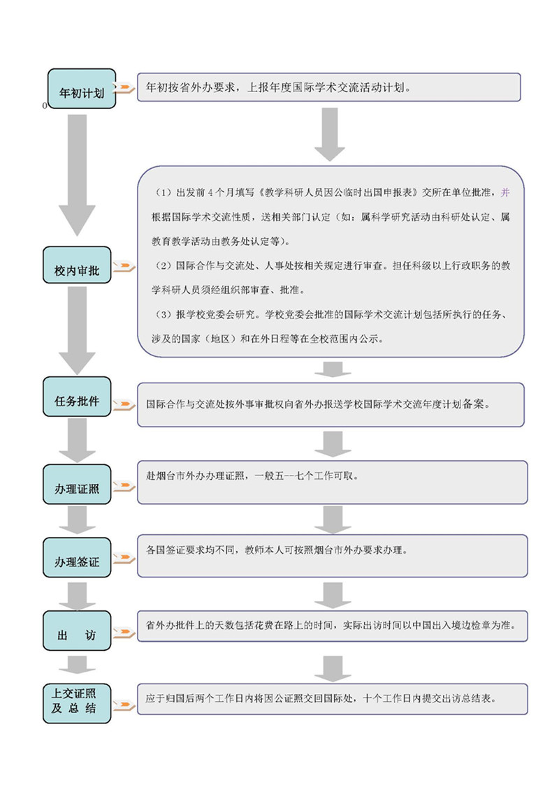 教学科研人员因公出国流程